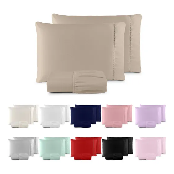Jogo de Lençol Casal Micropercal 400 Fios Cáqui Ebenezer Shop 3 Peças